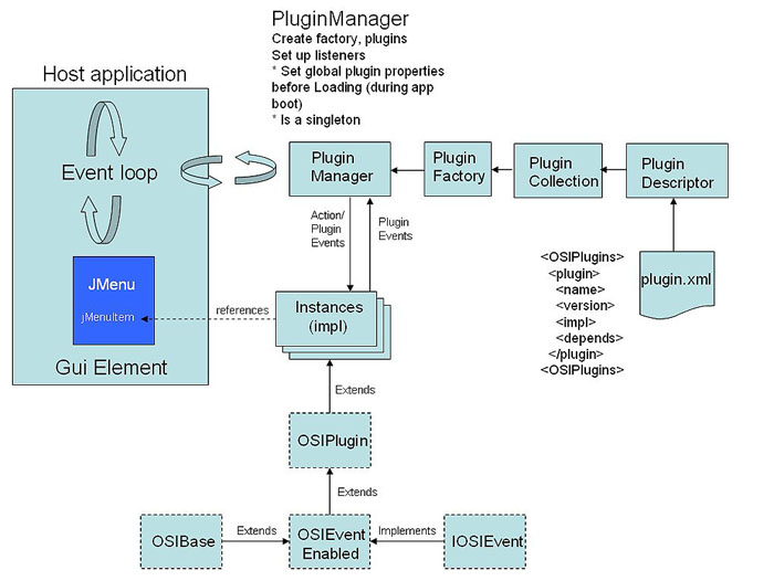 - You must set a series of properties for the plugin manager before you load the plugins from the plugin.xml file.  For example, if your plugin uses the Swing GUI components, you will need to set a parent such as JFrame to the plugin manager.  Other examples include the app working directory, cache directory, etc.